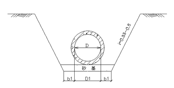 根據(jù)設(shè)計(jì)圖中設(shè)計(jì)管道的規(guī)格及埋置深度以及規(guī)范要求來(lái)確定溝槽開(kāi)挖的形式。