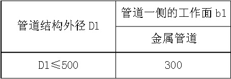 管道一側(cè)工作面寬度情況詳見(jiàn)下表: